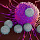Sent out by the immune system, T cells attack a cancer cell. (Illustration made from a microscopic photo.)
